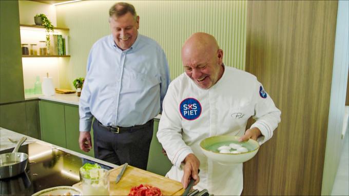 Donald Muylle is naar eigen zeggen vaak gevraagd voor televisieprogramma’s, maar wimpelt die vaak af. Voor SOS Piet XL wilde hij wel een uitzondering maken. Piet mag de garnalencocktail van Donald op punt zetten, want die is ‘allesbehalve feestelijk’, zo geeft hij aan.