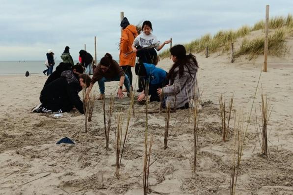 Oostende / Natuur Oostende / Natuur Vijftig mensen planten helmgras tijdens Dag van de Wetenschap in Oostende 23 november 2025