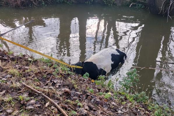 Handzame / Dieren Handzame / Dieren Drachtige koe van 800 kilogram uit beek gered door brandweer 26 november 2025