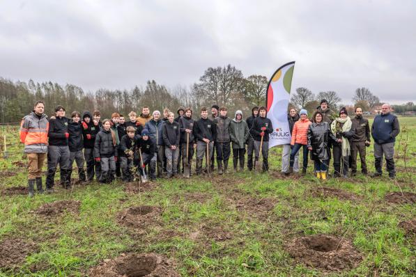 Roeselare / Milieu Roeselare / Milieu Leerlingen VABI en medewerkers Paulig planten samen 1,7 extra hectare Bergmolenbos aan 28 november 2025