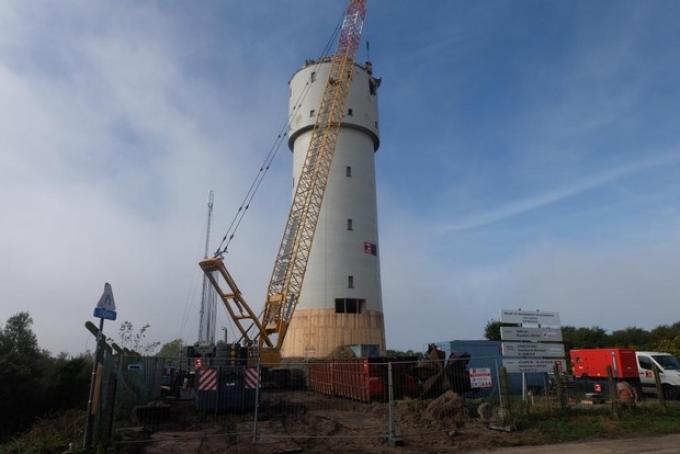 De afbraak is een echt huzarenstuk, want eerst moet het dak worden afgebroken door middel van een pneumatische hamer die in een container naar boven wordt gebracht. Eens deze klus geklaard wordt een kraan naar beneden gelaten en gebeuren de afbraakwerken verder tot waar de toren is afgebakend met hout. In plaats van de huidige watertoren komt een uitkijktoren.