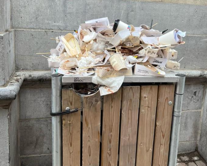 “We merken dat bepaalde uitbaters van takeaway handelszaken het niet zo nauw nemen met het bestaande afvalreglement. Het reglement verplicht hen om voldoende, goed zichtbare en bereikbare afvalmanden tegen de gevel of in het voor het publiek toegankelijke gedeelte van de inrichting te voorzien.”