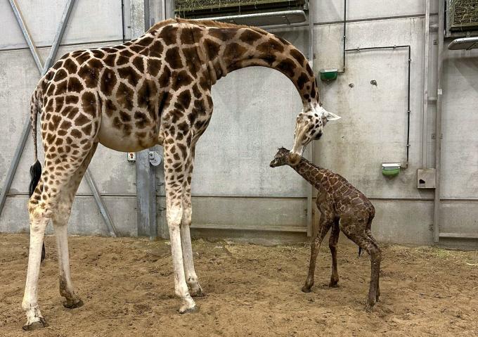 “Na een draagtijd van ongeveer 15 maanden zag het kalfje van de Rothschildgiraffen Safiya en Dumisani op 8 januari 2026 het levenslicht. De weeën begonnen rond 4.30 uur ’s nachts en drie uur later was de geboorte een feit. Het jong, genaamd Bandile, is een mannetje van 72,5 kg en meet 1,85 cm”, aldus Van Dorpe. “Safiya is niet onbekend met het moederschap. Anderhalf jaar geleden beviel ze van Mosi. Ook nu toont ze een beschermende houding en verzorgt ze haar jong met de nodige likjes.”