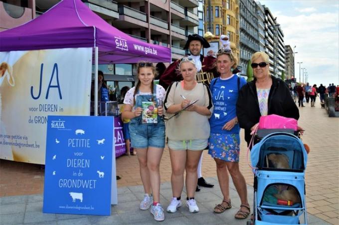 Vrijwilligers van dierenrechtenorganisatie GAIA stonden woensdagnamiddag op de Blankenbergse zeedijk met een petitie om het dierenwelzijn te laten verankeren in de Belgische Grondwet.
