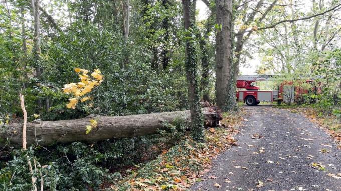 In de Gemeneweideweg Zuid in Sint-Kruis knakte een boom af en kwam die op de oprit terecht. Grote schade bleef gelukkig uit. Ook aan de kust in Knokke en Blankenberge kwamen takken op fietspaden en openbare plaatsen terecht. Tegen de avond gaat de wind liggen en zal het rustiger worden.