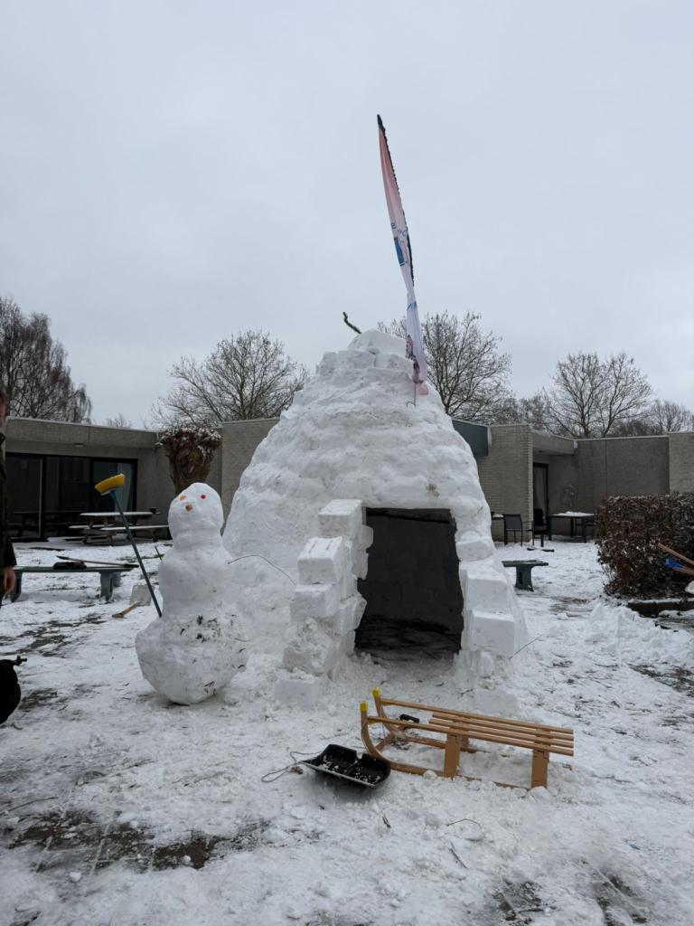Enkele bakken deden dienst om de sneeuwblokken te maken voor de iglo. Het resultaat mag er meer dan wezen. Al is de vraag hoe lang het meesterwerk er nog zal kunnen staan…