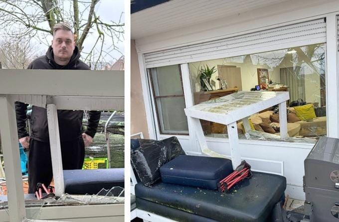 Storm Goretti trekt op dit moment over onze regio en laat een spoor van schade achter. Dat heeft Sammy Declercq in Aalbeke bij Kortrijk aan de levende lijve mogen ondervinden. De wind pakte zijn meubels buiten op en knalde die door het raam. “Het was precies alsof er een vrachtwagen door mijn living reed.”