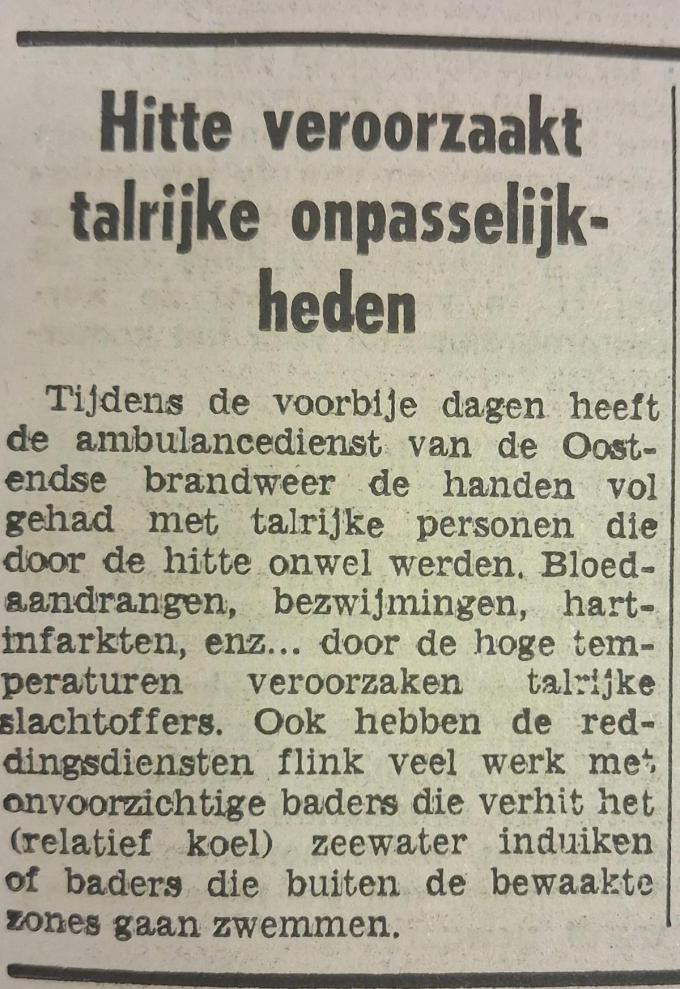 De hulpdiensten hadden de hele zomer de handen vol, want de hitte veroorzaakte talrijke onpasselijkheden. Daaronder catalogeren we onder andere bloedaandrangen, bezwijmingen en hartinfarkten.
