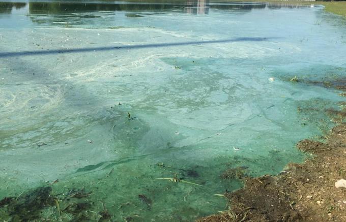 “Vermijd contact met deze drijflagen! Hou ook je hond uit het water met blauwalgen en laat kinderen niet spelen aan de waterrand. Bij huidcontact zo vlug mogelijk afspoelen of douchen. Hengelen blijft toegelaten”, aldus het stadsbestuur.