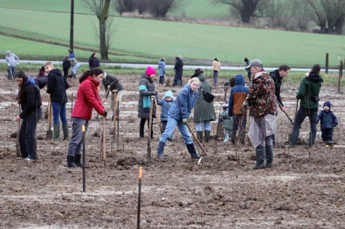 Zo’n 150 mensen, of 300 helpende handen, staken de handen uit de mouwen om in de zware kleigrond bomen te planten. Vooraleer aan het werk te gaan, kregen de mensen uitleg over de wijze van aanplanten. Er werd immers met de ‘cirkelmethode’ gewerkt. Dit blijkt een ideale manier te zijn om succes te hebben bij de ontwikkeling van het bos.