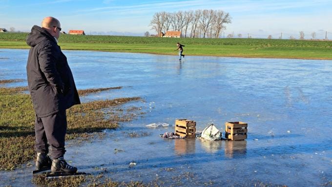 De winterprik zorgde zaterdag al voor de eerste schaatsers in onze provincie. Op een ondergelopen weide in Stavele waagden enkele enthousiastelingen zich deze namiddag voorzichtig op het ijs. Dankzij de aanhoudende koude temperaturen is het wateroppervlak aangevroren, al blijft voorzichtigheid geboden op natuurlijke ijsplekken.