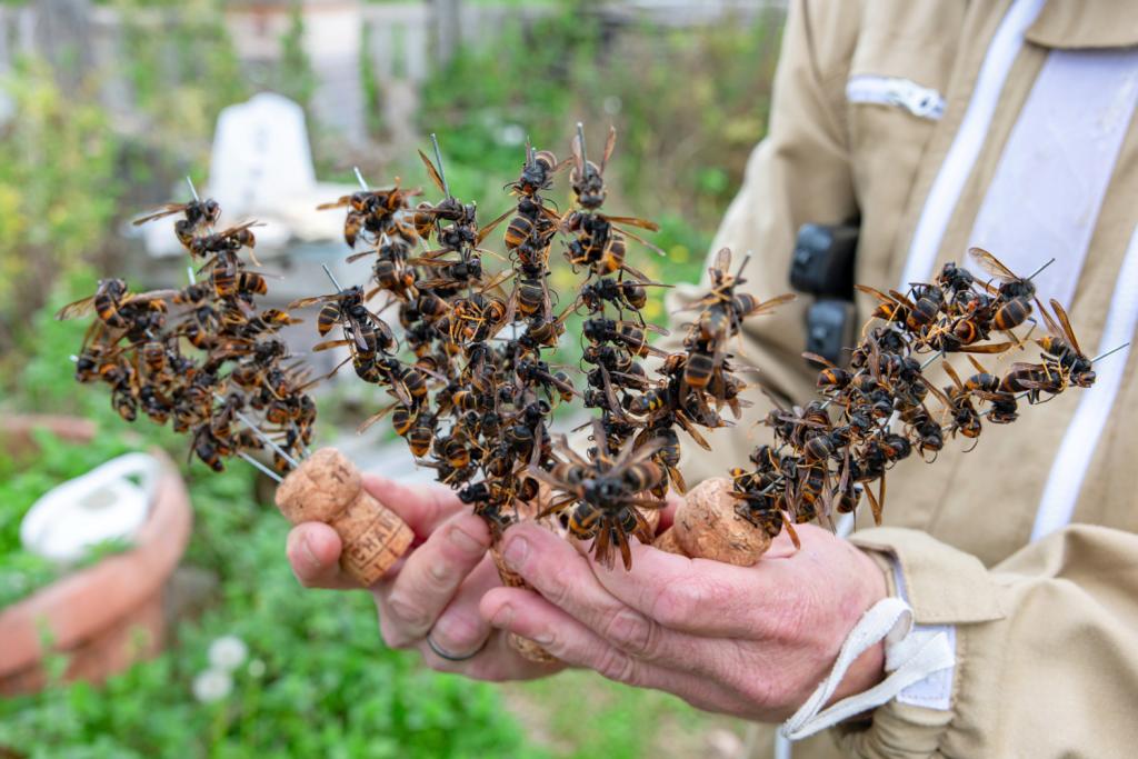 “Natuurlijk is het beste nog altijd om de nesten op te sporen. Je kan veel tijd steken in Aziatische hoornaars doodkloppen, maar daar schiet je niets mee op. Met een levende hoornaar kan je het nest lokaliseren en laten verdelgen. Dit jaar waren er vier keer zoveel nesten als vorig jaar en dat zal alleen maar toenemen. Dus de provincie moet de verdelgingsaanpak aanpassen. De imkers zullen moeten samenwerken om nesten te zoeken en het probleem aan de bron aan te pakken.”