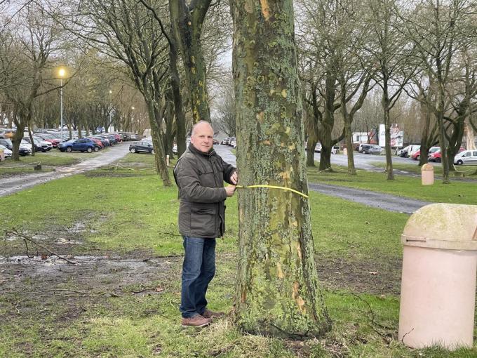 De Clerck ging er onlangs de bomen inspecteren en hun stamomtrek meten. “Het gaat om platanen met een omtrek tussen 1 en 2 meter”, aldus De Clerck. “Ze zijn supergezond en velen staan hier intussen dertig jaar, denk ik, de fleur van hun leven. De waarde van deze bomen bedraagt 640.902 euro. De ecologische waarde van de bomen behoort tot het algemeen belang. In dit gebied komen vleermuizen voor, die gebruik maken van deze bomen. Ook buizerds uit de buurt dreigen een deel van hun habitat te verliezen.”