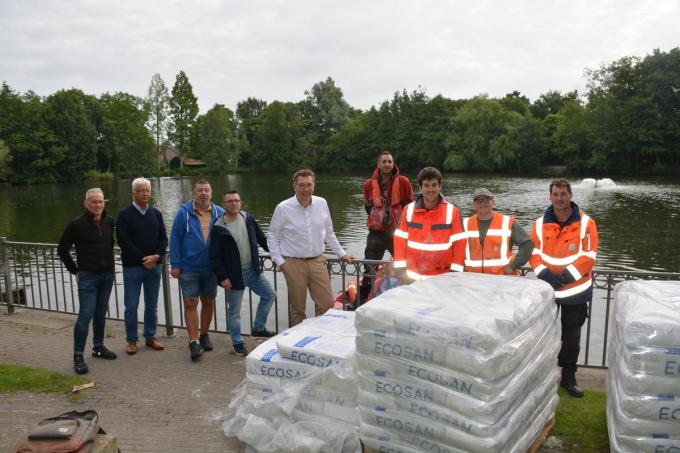 “In plaats van te baggeren kiezen we voor een milieuvriendelijk alternatief: coccolietenkrijt. Dit krijt gaat verzuring tegen, stimuleert de groei van aërobe bacteriën die slib afbreken, en maakt het water helder”, zegt schepen van Openbaar Domein Franky Demon.