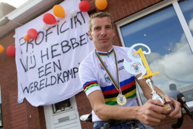 Nico Verhelst (36) begon acht jaar geleden met koersen, maar hoorde pas recent over de wedstrijden voor bakkers. Als chauffeur bij Molens De Vlieger uit Evergem levert hij tijdens de week bloem aan bakkers en daarom mocht hij ook zijn kans wagen op dit ongewoon kampioenschap. Nico werd eerste in zijn leeftijdscategorie 30 tot 40 jaar en mag zich dus wereldkampioen noemen. In het Café Breughel, waar zijn vriendin Ilse achter de tapkast staat, werd hij dan ook met een feest een kampioen waardig ingehaald.