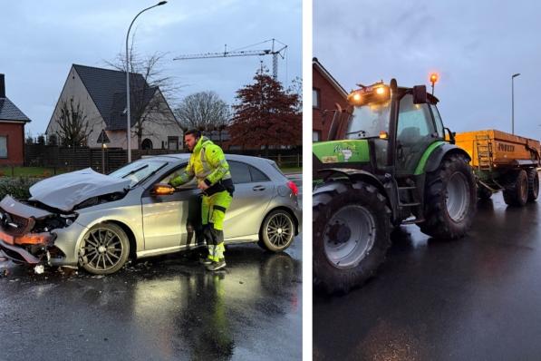 Ruddervoorde / Verkeersongeval Ruddervoorde / Verkeersongeval Geen gewonden bij botsing tussen auto en tractor op kruispunt in Ruddervoorde, wel even lichte verkeershinder 25 november 2025