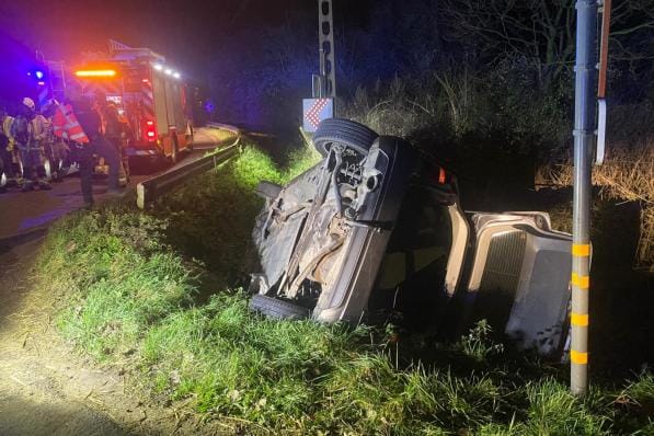 Langemark / Verkeersongeval Langemark / Verkeersongeval Man onder invloed rijdt rechtdoor en belandt in gracht, brandweer moet bestuurder bevrijden 22 december 2025