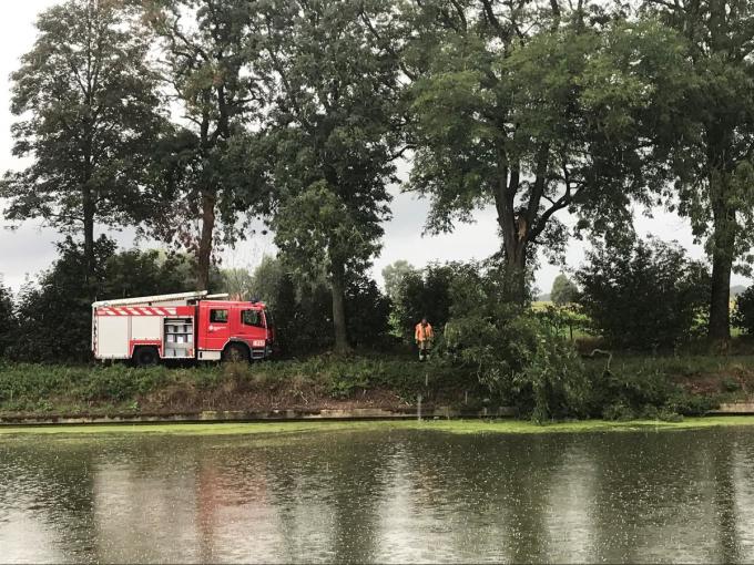 De grote tak lag dwars over het pad, dat heel wat hinder veroorzaakte voor fietsers en wandelaars. De Ieperse spuitgasten zaagden de tak in stukken en maakten het pad weer vrij. Het opruimwerk nam een uurtje in beslag.