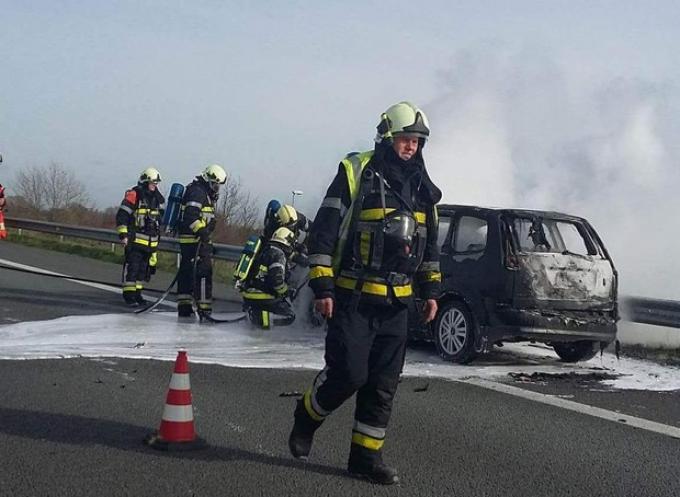 De auto strandde op de pechstrook tussen Jabbeke en Gistel, richting Jabbeke, nog voor de splitsing richting Oostende. De brandweer was snel ter plaatse om het vuur te bestrijden maar niettemin bleef er alleen nog zwartgeblakerd schroot van het voertuig over.