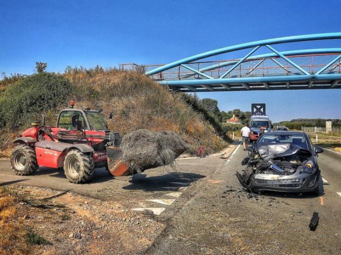 De bestuurder van de Opel Corsa kon een aanrijding niet meer vermijden en knalde pal op de grijparm van het landbouwvoertuig. Beide bestuurders bleven ongedeerd, maar de schade aan de auto was aanzienlijk. De politie kwam ter plaatse om de vaststellingen te doen van het ongeval. Het verkeer moest tijdelijk over één rijstrook.