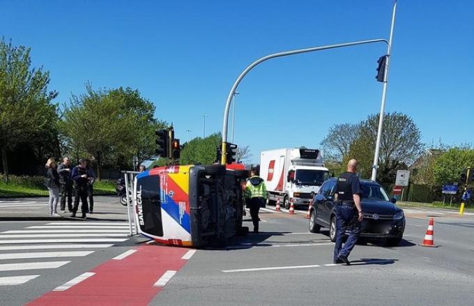 Op het kruispunt van de Gistelsesteenweg en de Elisabethlaan in Oostende gebeurde woensdagmiddag een zwaar verkeersongeval. Een bestelwagen belandde er op zijn kant.