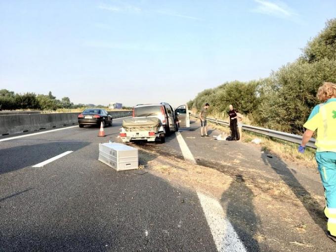 Het Nederlandse busje dat op de E40 richting Calais reed, ging ter hoogte van de parking in Westkerke van de baan en belandde tegen de rechtervangrail. Door de klap werd het voertuig opnieuw op de rijweg geslingerd en verloor het een deel van de lading.