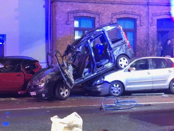 Een kleine bestelwagen die richting Dudzele reed moest er uitwijken voor een wagen die uit de Jacob Van Maerlandstraat kwam. Door het uitwijkmanoeuvre ging de wagen aan het slippen, over de kop en kwam terecht op een kleine personenwagen die volledig geplet werd. Vervolgens kwam de bestelwagen rechtstaand tot stilstand op een tweede personenwagen.