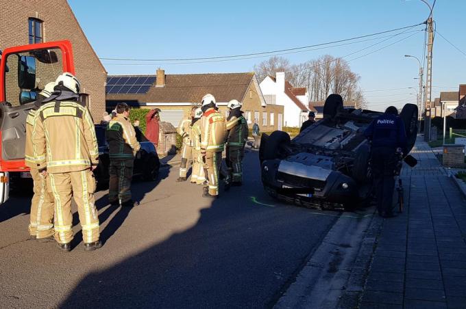 In de Berkenlaan in Eernegem is maandagvoormiddag een bestuurder uit zijn auto bevrijd door de hulpdiensten. Hij was met zijn Dacia Duster tegen een geparkeerde Mini Cooper gebotst, waarop zijn auto op zijn dak belandde.