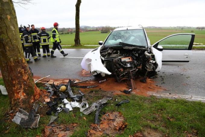 Zaterdagmorgen knalde een autobestuurster in Kemmel om een nog onbekende reden tegen een boom.