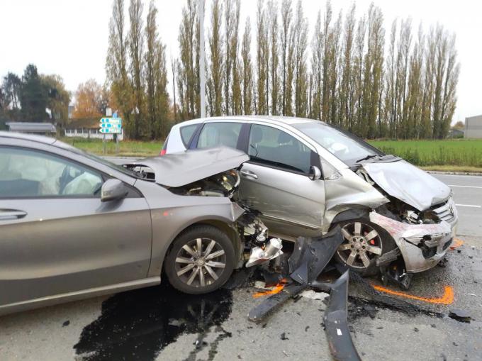 Twee Mercedessen botsten er zwaar op elkaar. Beide automobilisten geraakten lichtgewond, hun wagens zijn zwaar beschadigd. Door het ongeval ontstond er een file richting Roeselare. Bestuurders moesten een kort omleiding volgen.