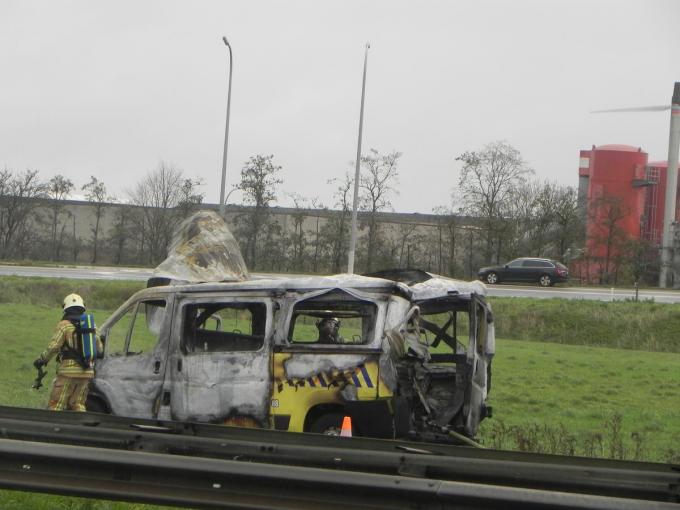 Die stond al snel in brand. Een zwarte rookpluim was tot ver te zien. Terwijl de hulpdiensten reeds toesnelden vond er een explosie plaats. Het voertuig brandde volledig uit op de pechstrook.