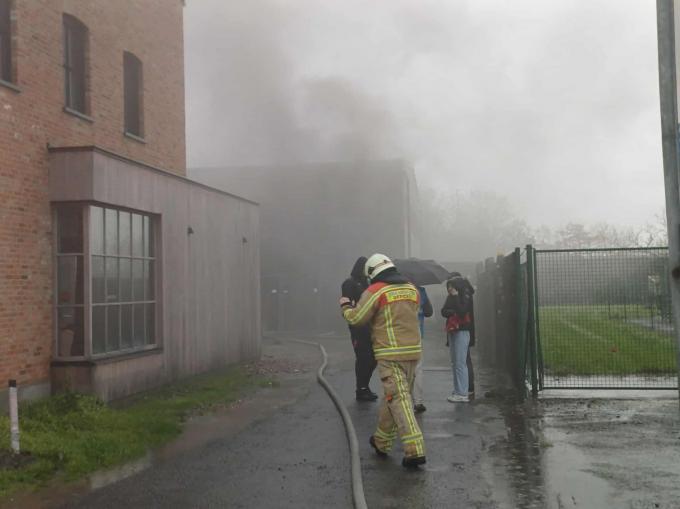 In een bedrijf dat gespecialiseerd is in onder andere laswerken van tal van constructies was een man maandagmiddag aan het werken aan een auto toen het plotseling verkeerd liep. De wagen vatte plots vuur. De brandweer snelde onmiddellijk massaal ter plaatse. Op dat ogenblik was er al boven het gebouw zwarte rook te zien.
