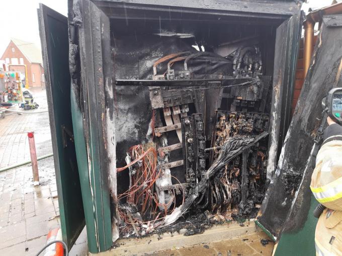 Het was even schrikken dinsdagavond, toen de brandweer van Ardooie moest uitrukken naar Koolskamp. Daar stond ter hoogte van café Den Uil een elektriciteitscabine in lichtelaaie.