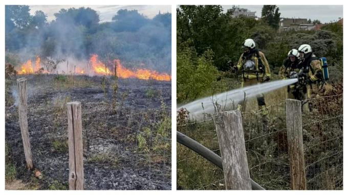 Langs de Kinonlaan in De Panne ontstond woensdagavond een heidebrand. Dankzij alerte buren bleef de schade beperkt.