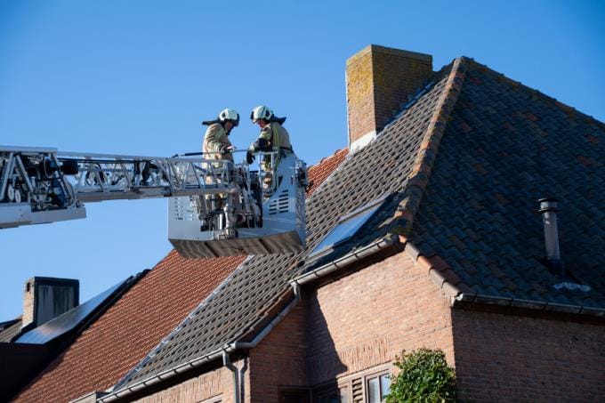 Het waren de buren die donderdagochtend rond 10 uur in de Epsomlaan in Oostende een brandgeur waarnamen. Ze gingen buiten een kijkje nemen en zagen hoe rook ontsnapte van onder de dakpannen van een halfopen woning. De brandweer snelde meteen ter plaatse. “Bij aankomst was de woning van boven tot onder gevuld met rook”, zegt brandweerluitenant Roemer Vanhoutte. “De rook kwam van onder de pannen en de dakgoot. Onze mensen beukten een deur in en vatten de bluswerken aan.”