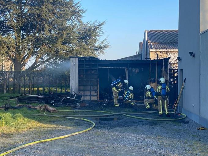 Initieel werden de brandweerlieden nog opgeroepen voor een kleine buitenbrand. Eens ze in de Eerste Aardstraat in Bavikhove waren toegekomen, zagen ze al snel dat er meer aan de hand was. Een tuinhuis stond er in lichterlaaie, met vlammen die al uit het dak sloegen. Een gevaarlijke situatie, ook omdat er gasflessen in de brandende buitenberging stonden.