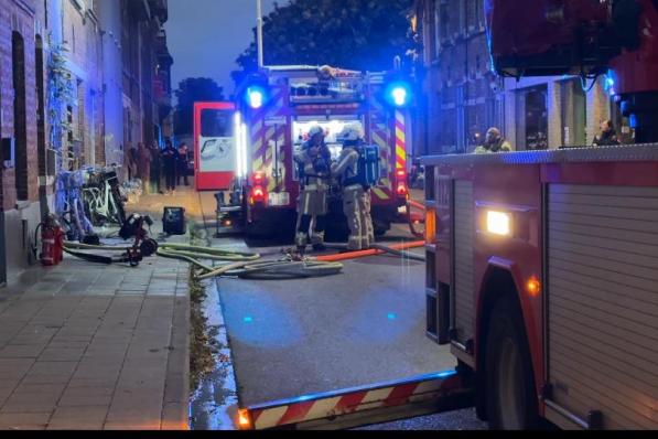 Izegem / Brand Izegem / Brand Hybride wagen die explosie veroorzaakte, vat opnieuw vuur in Izegem 14 oktober 2025