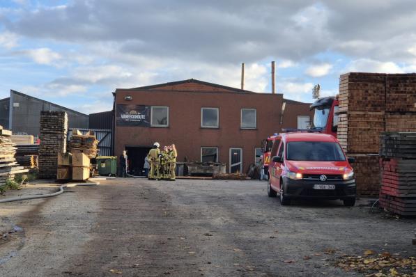 Pittem / Brand Pittem / Brand Brand bij houtzagerij in Pittem: eigenaars blussen zelf het vuur en kunnen schade zo beperken 27 oktober 2025