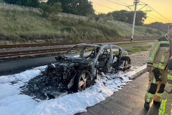 Video Oostkamp / Brand Video Oostkamp / Brand KIJK - Uitgebrande elektrische Porsche vat opnieuw vuur tijdens takelwerken 20 juni 2025
