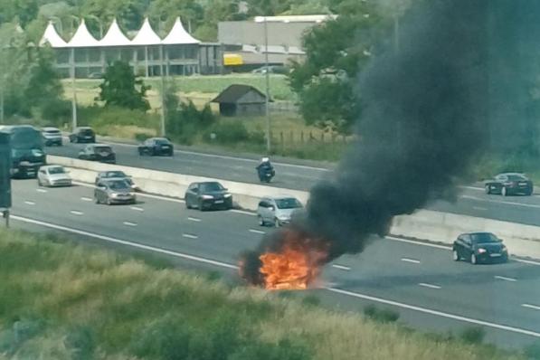 Beernem / Brand Beernem / Brand Wagen volledig verloren nadat vlammen uit motor komen op E40 in Beernem 21 juni 2025