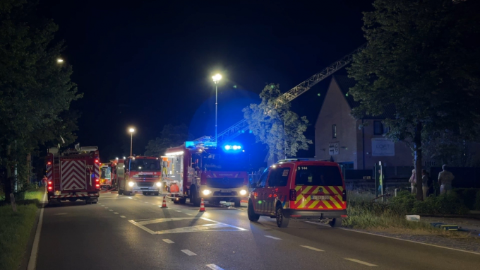 Door de felle brand was de Torhoutsesteenweg in beide richtingen voor alle verkeer afgesloten.