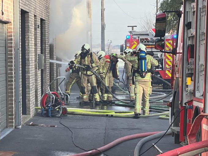 Het gaat om een huizenrij met drie woningen naast elkaar. De brand woedt in de verste woning en die is reddeloos verloren. De brandweer probeert te voorkomen dat het vuur overslaat op de middelste woning. Daar was niemand thuis. De bewoonster van het getroffen huis werd met de ziekenwagen naar het ziekenhuis overgebracht. Ze liep een rookvergiftiging op en was thuis op het ogenblik dat het brandde. Of ze ook brandwonden opliep is niet duidelijk. Volgens de eerste vaststellingen zou de brand ontstaan zijn bij een extra kacheltje. Een hond zou in de brand gebleven zijn.