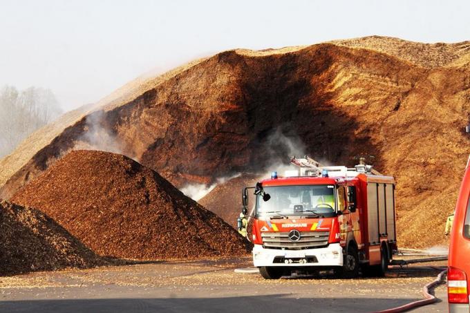 Door zelfontbranding ontstond brand in een berg houtsnippers, die daar liggen om verwerkt te worden. De firma is gespecialiseerd in houtpellets. Hoelang de brand zal duren, is niet te voorspellen door de omvang van de berg houtsnippers.