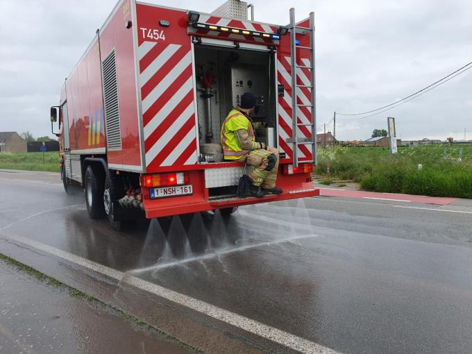 De brandweer werd maandagavond opgeroepen om een mestspoor op te ruimen in Merkem bij Houthulst.