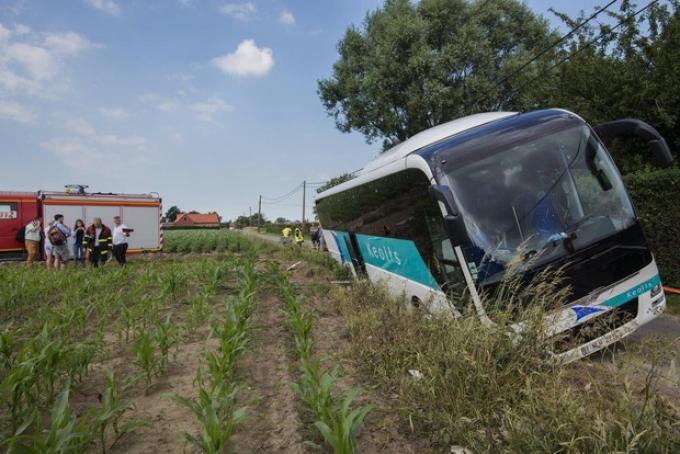 Maandagnamiddag kantelde een bus met jongeren van KSA De Haan in de gracht in de Haandekotstraat te Haringe. Dat gebeurde nadat de bus een tegenligger ontmoette in de kleine landelijke weg. De berm kon het gewicht van de bus niet aan en zakte gedeeltelijk weg. Geen enkele van de jongeren raakte gewond.