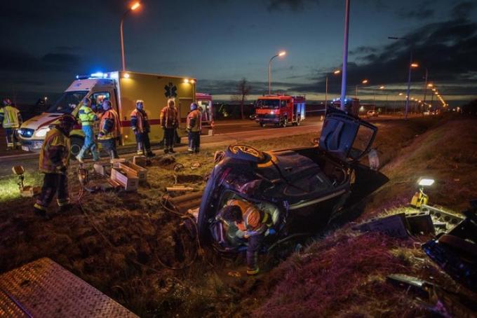 Zondagavond gebeurde een zwaar ongeval langs de Westhoekweg in Poperinge. Een wagen die in de richting van Poperinge reed, kwam ter hoogte van de windmolens op zijn dak terecht in de gracht naast de spoorwegbedding.