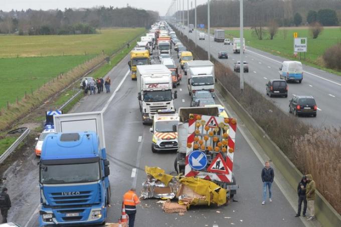 Op het rechterrijvak van de autosnelweg zijn momenteel werken aan de gang. Een vrachtwagenbestuurder had dat blijkbaar niet opgemerkt en reed rond 9.30 uur vol tegen een signalisatievoertuig. Daardoor is de E40 volledig versperd. Er was absoluut geen doorgang waardoor de file erg snel aangroeit.