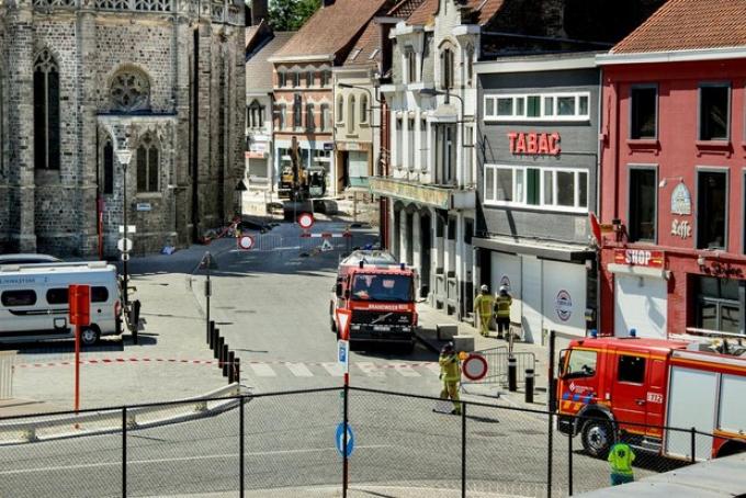 Twee arbeiders van aannemer Cnockaert Construct waren samen met twee collega-kraanbestuurders aan de slag toen de middendrukgasleiding werd geraakt. Er ontstond daardoor een ferm sissend geluid. Brandweer en politie kwamen ter plaatse. Uit veiligheidsoverwegingen werd de buurt hermetisch afgesloten.