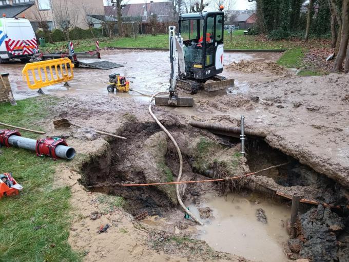 Doordat een elektriciteitskast, die in de getroffen zone stond, is beginnen roken werden vier straten van het net afgekoppeld. Ook het leidingwater werd overal dichtgedraaid. Vakmensen van De Watergroep kwamen ter plaatse om het lek te dichten, al bleek dat een stevige klus te zijn. “We hebben een tweede en grotere kraan ter plaatse gevraagd”, klonk het. “De ondergrond is dusdanig zacht geworden dat er geen beginnen aan is. Van zodra we een stuk aarde weggraven, zakt de rest in. Wat de oorzaak van het lek is? Het zou kunnen dat het de ouderdom van de buizen is, maar dat zijn we absoluut niet zeker. Dergelijke modellen hebben een levensduur van 40 à 50 jaar.”