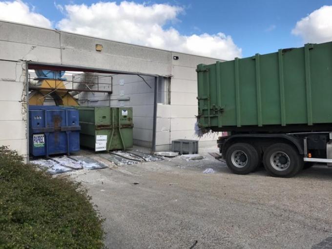 In de handelsstraat in het industriegebied Kampveld in Oostkamp is het bij het afleveren van een afvalcontainer fout gelopen. De chaufeur maakte een inschattingsfout en haalde de volle container te vroeg naar boven terwijl hij al vooruit reed. Daardoor raakte hij de overspanning, die gedeeltelijk naar beneden kwam. De rest dreigde nadien verder in te storten. De brandweer kwam ter plaatse om het gebouw te stabiliseren. Er raakte bij het incident niemand gewond.